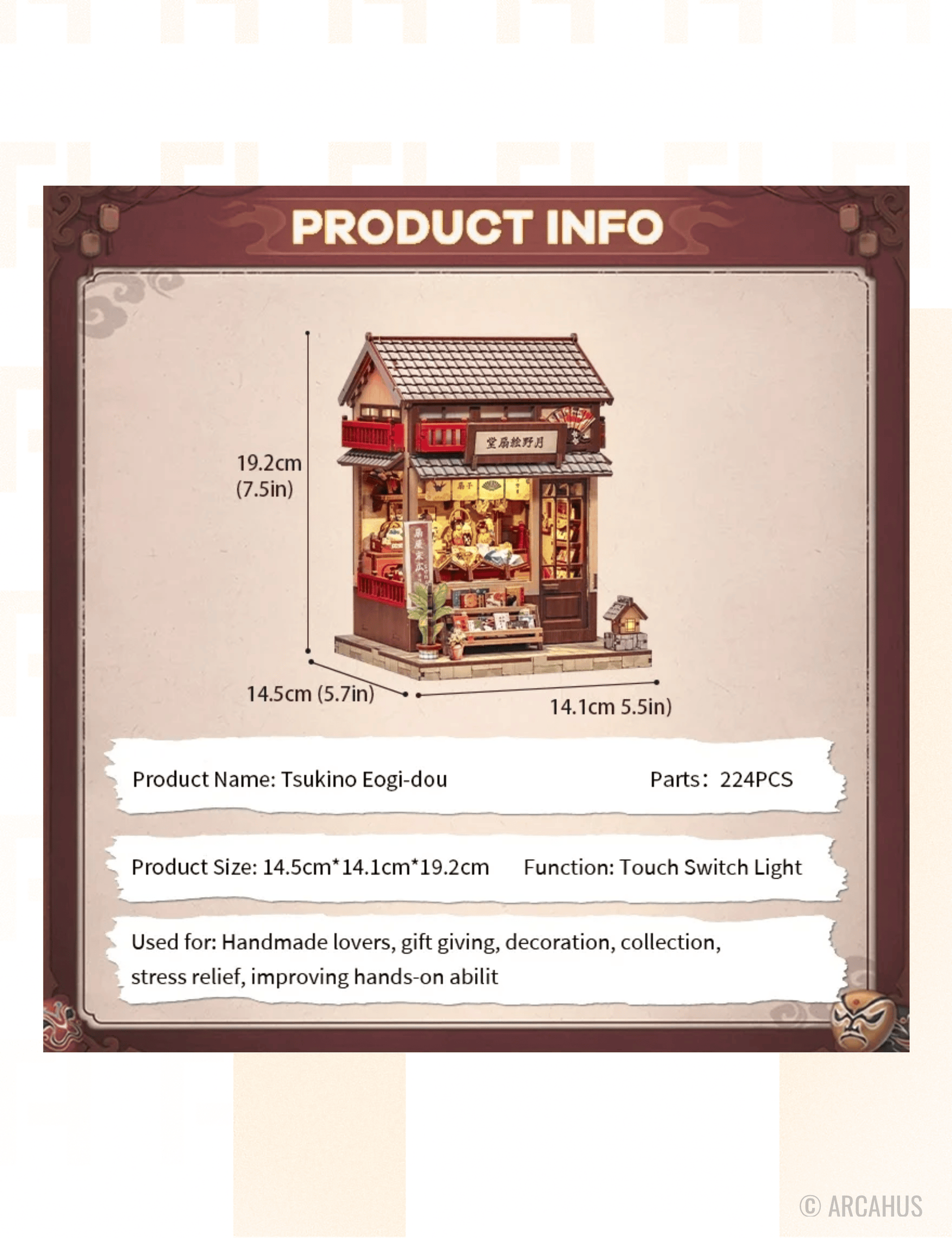 Kit "Book Nook" Tsukino Eogi-Dou avec éclairage Led Intégrée [Kit à construire, 224 pièces, Matériaux : contreplaqué, fonctionne avec 2 piles AAA non fournies, Dimensions produit assemblées 19x14x14cm]